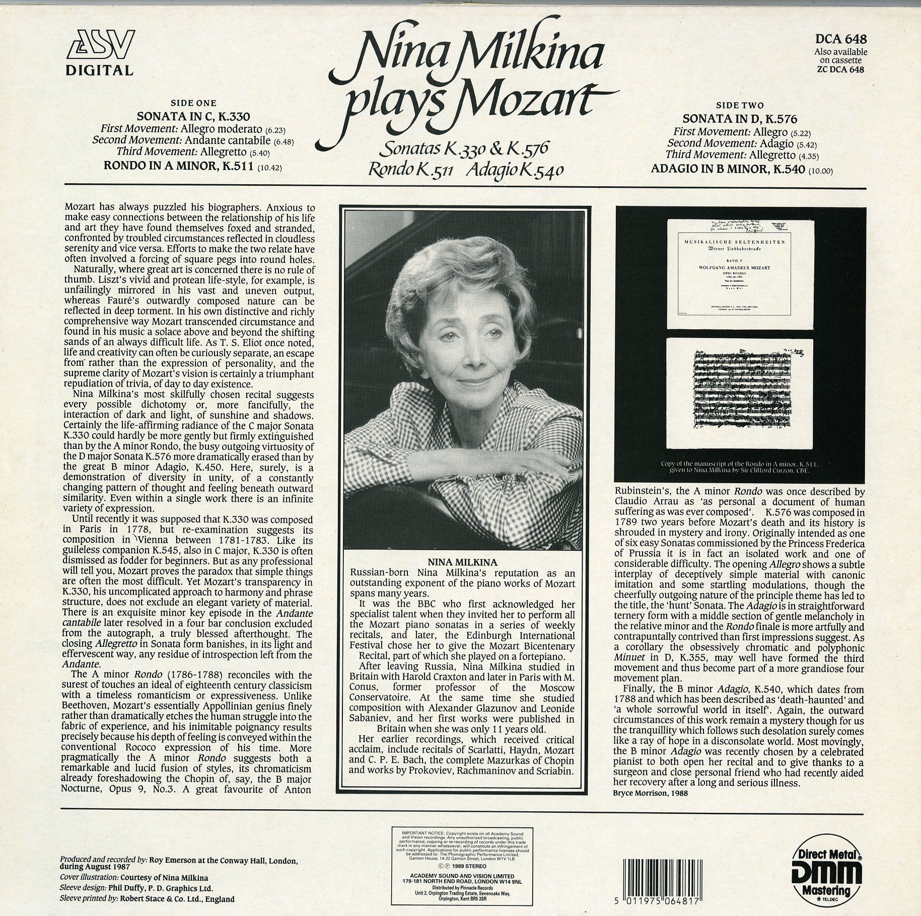 英 ASV DCA 648 英 ASV DCA 648 (DCA648) ニナ・ミルキナ モーツァルト:Pno ソナタ No.10 & No.17,ロンド イ短調他 ★ 在庫状態 : 売り切れ ¥8,800(税込) 只今お取扱い出来ません
