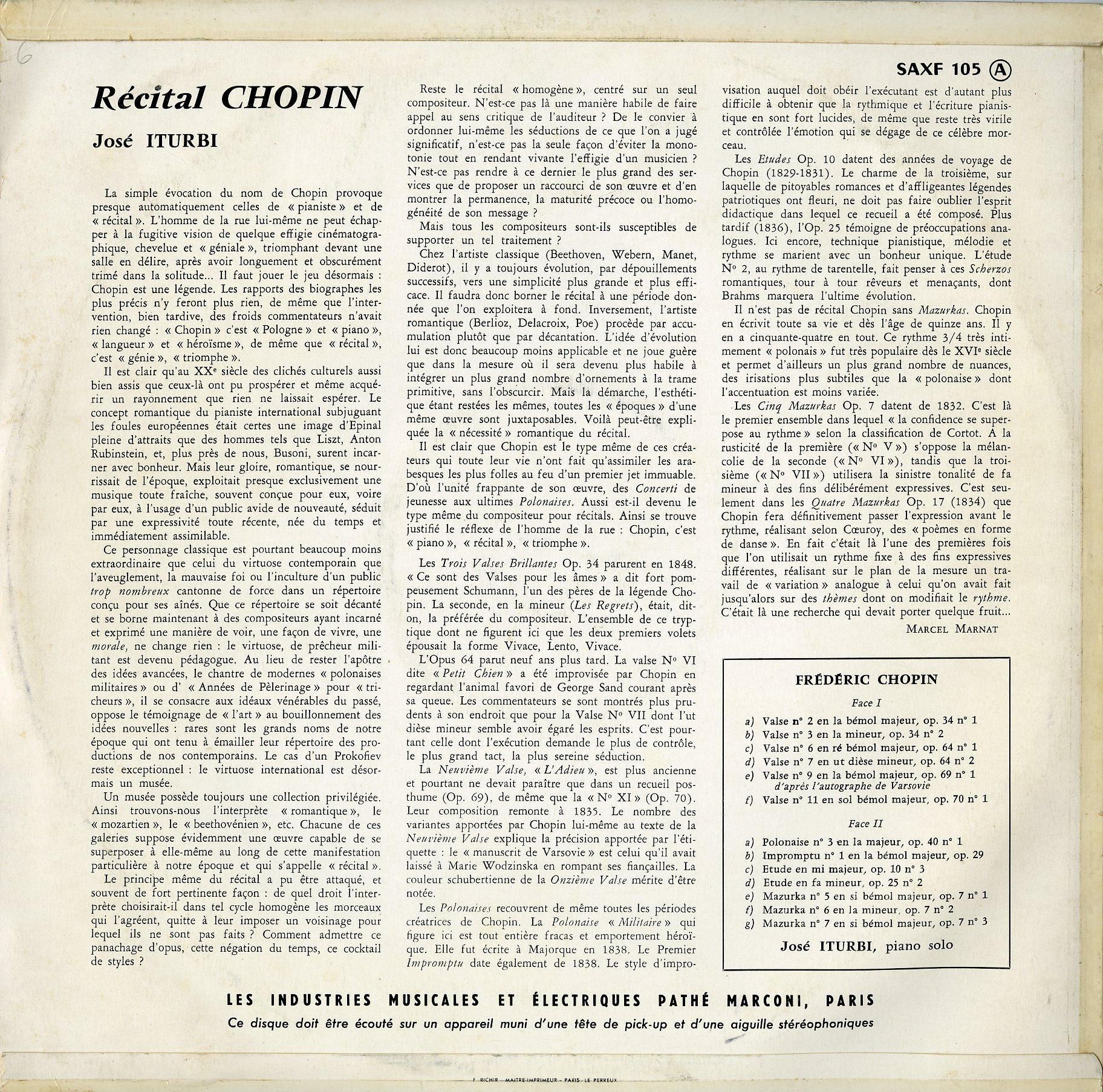仏 COLUMBIA SAXF 105 仏 COLUMBIA SAXF 105 (SAXF105) J.イトゥルビ ショパン:ピアノ曲集 ワルツ,マズルカ,即興曲 No.1,ポロネーズ No.3,練習曲他 ☆ 在庫状態 : 在庫有り ¥55,000(税込) 数量