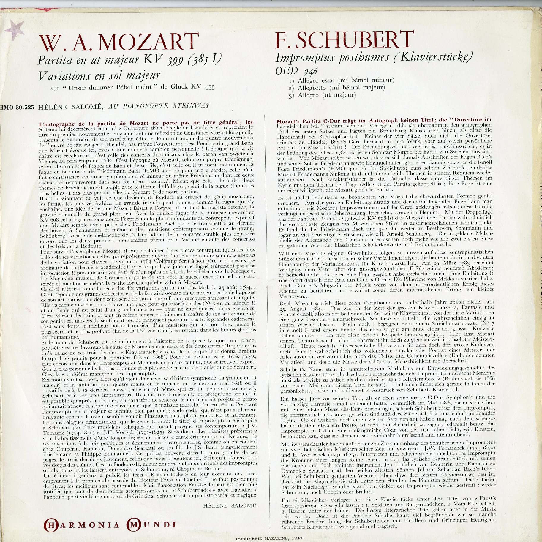 独 HARMONIA MUNDI HMO 30.525 独 HARMONIA MUNDI HMO 30.525 (HMO30.525) エレーヌ・サロメ モーツァルト:パルティータ ハ長調 K.399,グルックによる変奏曲 ト長調 K.455,シューベルト:即興曲集 D.946 在庫状態 : 売り切れ ¥8,800(税込) 只今お取扱い出来ません
