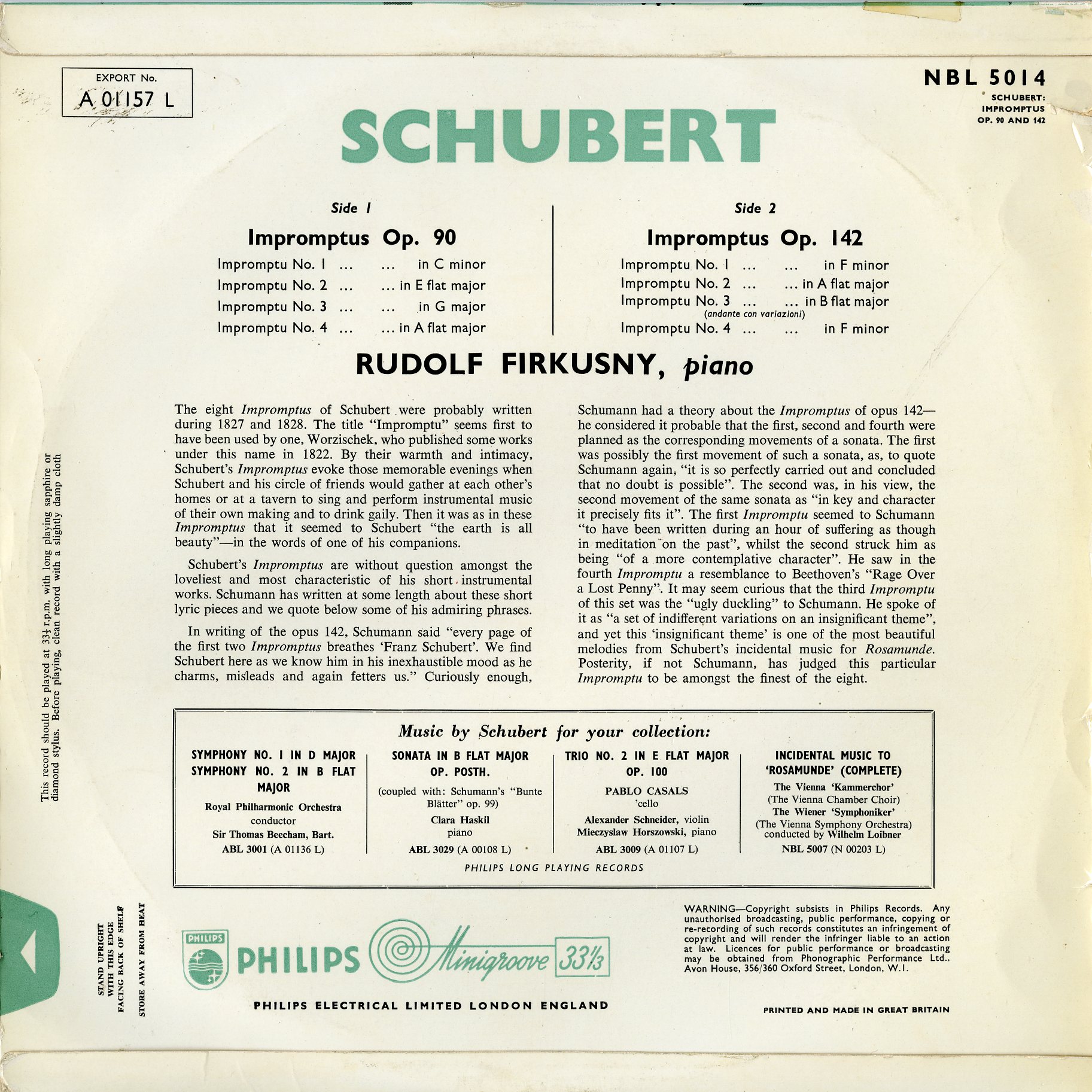 フィルクスニー シューベルト:即興曲集