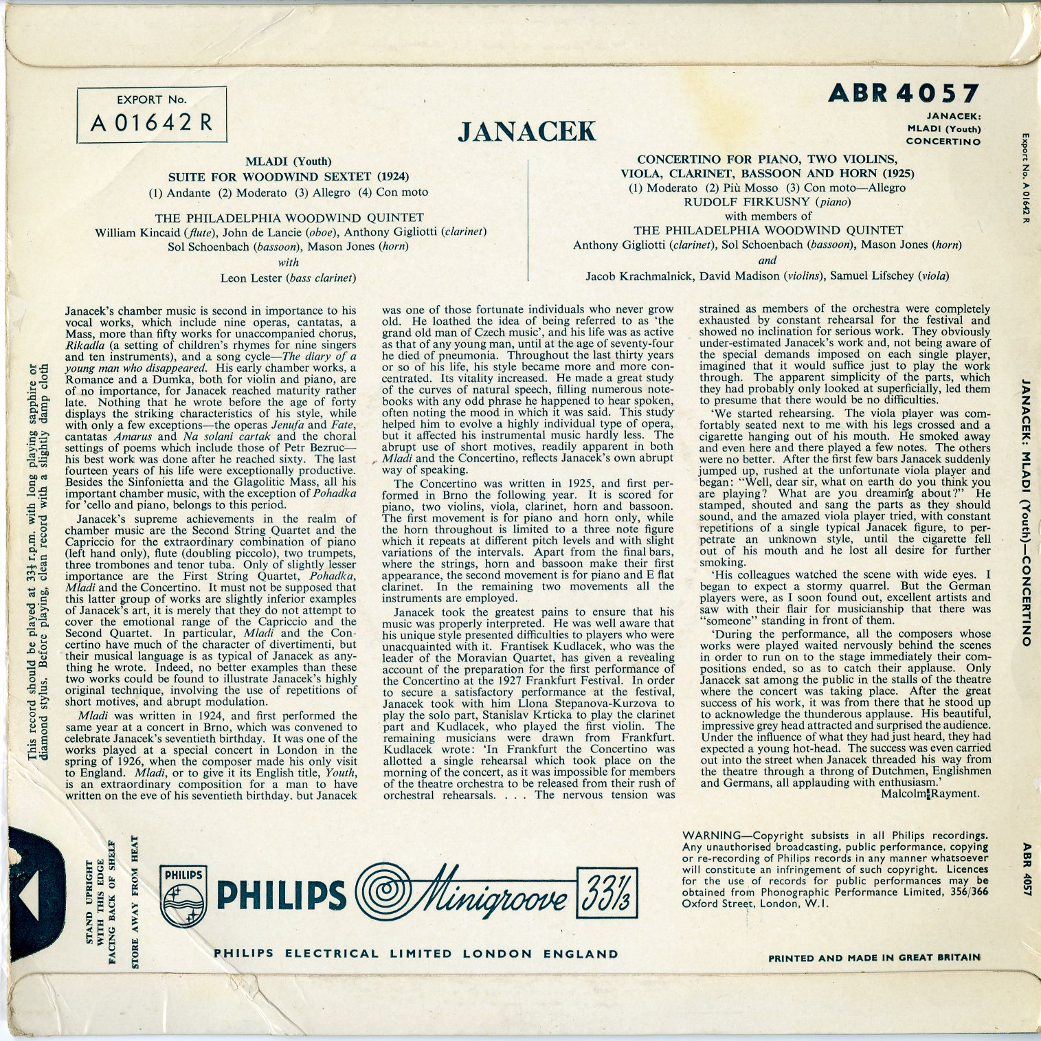 ヤナーチェク:六重奏曲「青春」,コンチェルティーノ フィルクスニー(Pf),フィラデルフィア木菅五重奏団 <10inch>