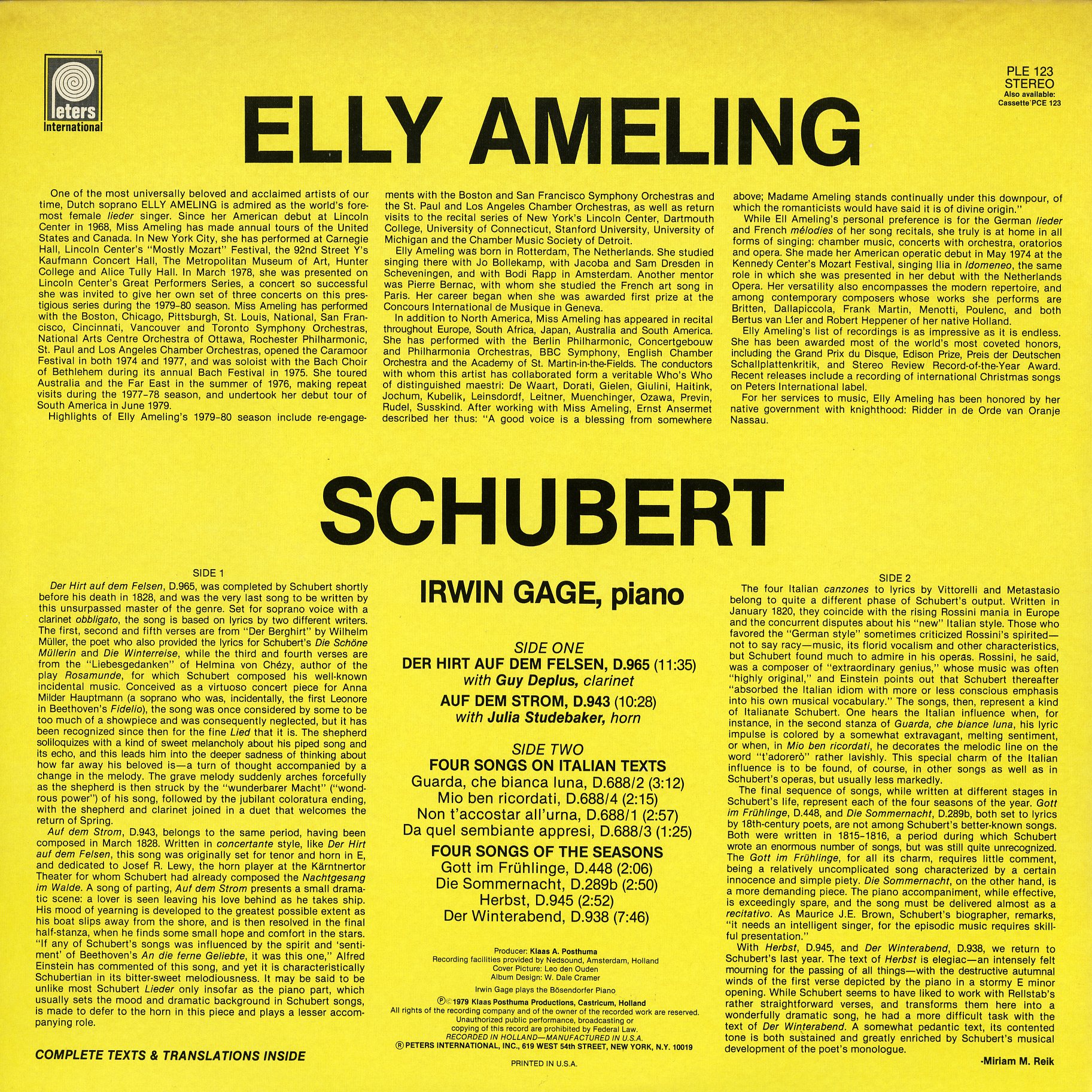アメリンク シューベルト:岩の上の羊飼い,川の上で,4つのイタリア語歌曲,四季の歌曲 ギ・ドプリュ(Cl),I.ゲージ(Pf) ☆