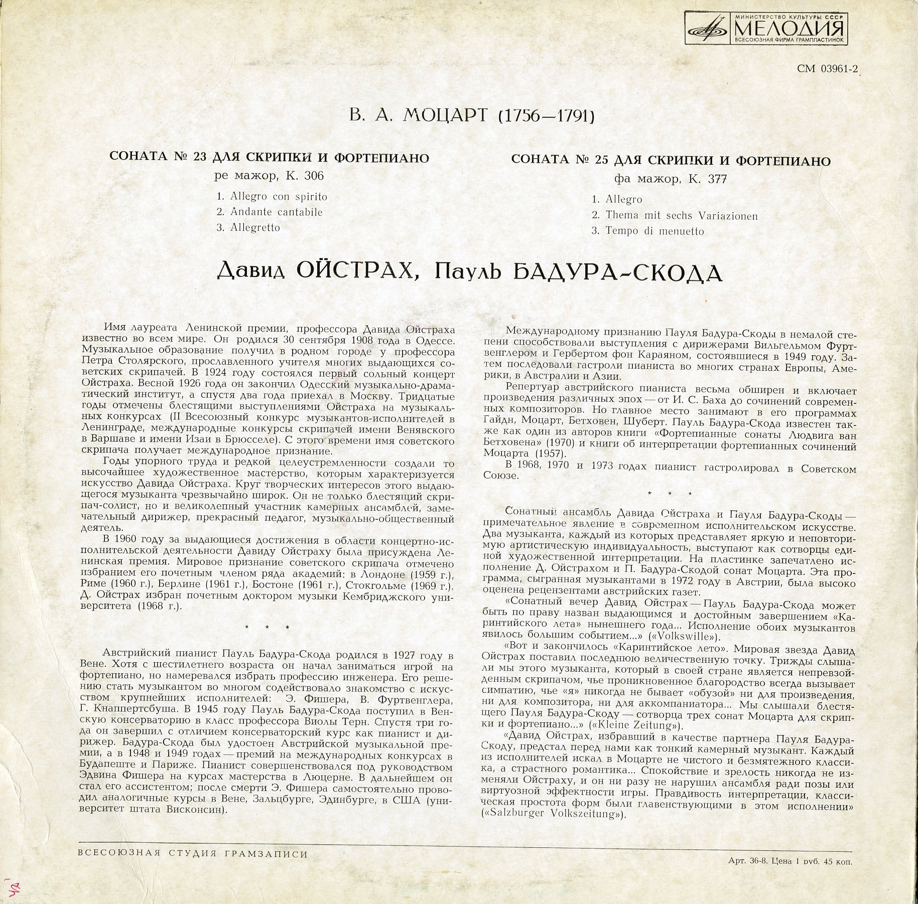 露 MELODIA CM 03961 露 MELODIA CM 03961 (CM03961) オイストラフ モーツァルト:Vn ソナタ K.306 & K.377 B-スコダ(Pf) ☆ オイストラフ&スコダのモーツァルト3枚で 在庫状態 : 在庫有り ¥22,000(税込) 数量