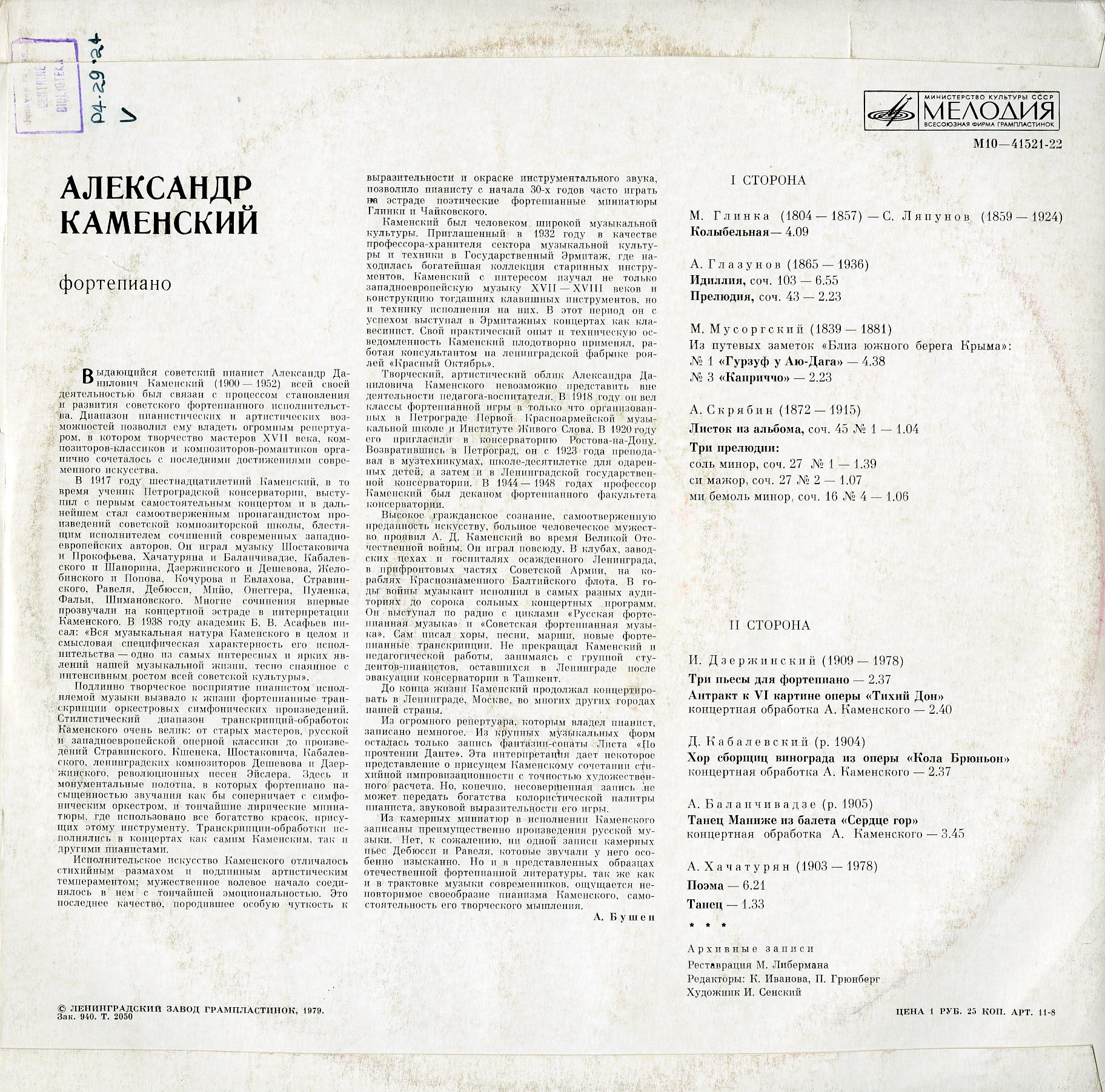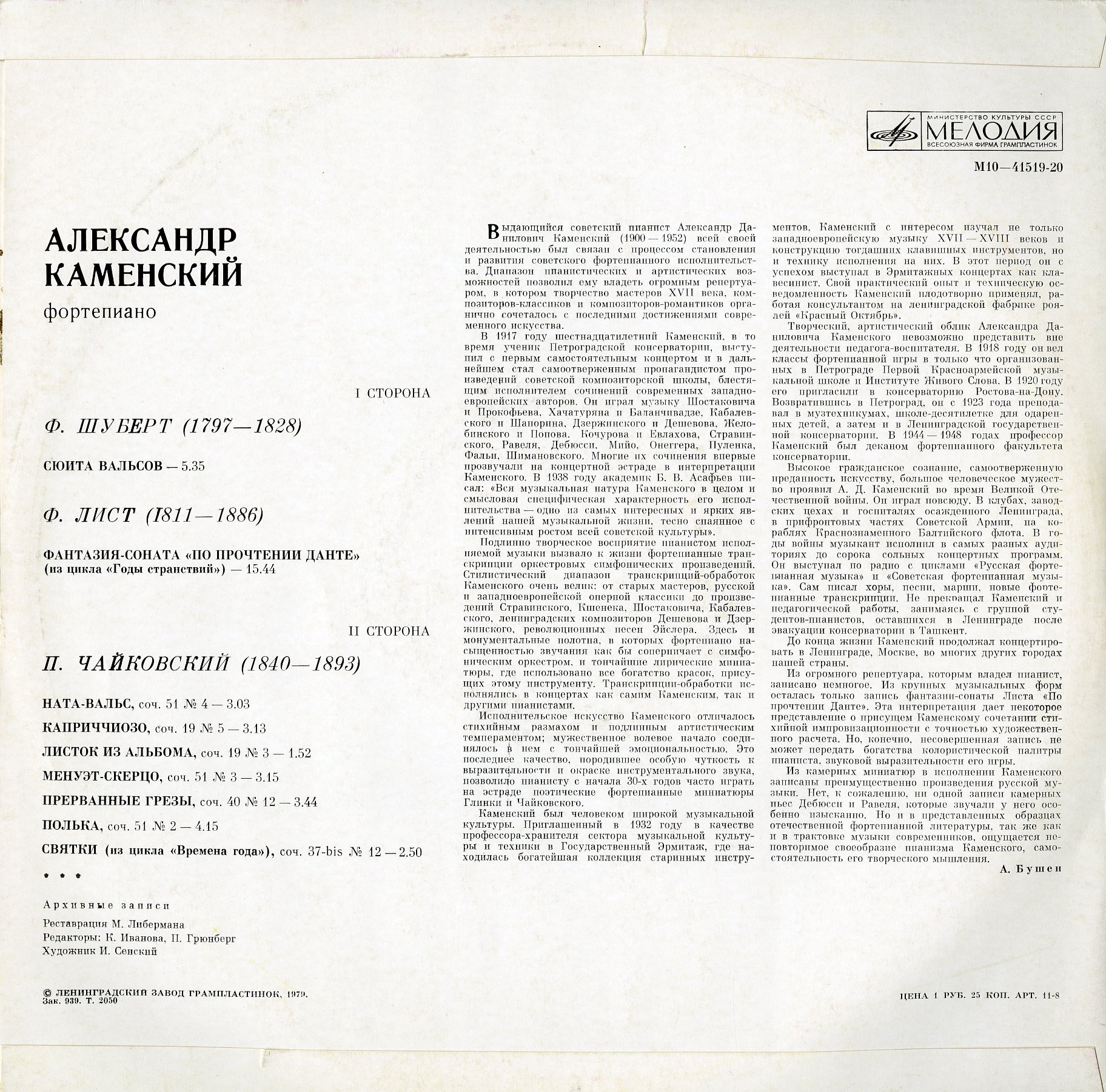A.カメンスキー シューベルト:ワルツ組曲,リスト:ダンテを読んで,チャイコフスキー:小品他グリンカ,グラズノフ,ムソルグスキー他のピアノ小品 2LPで