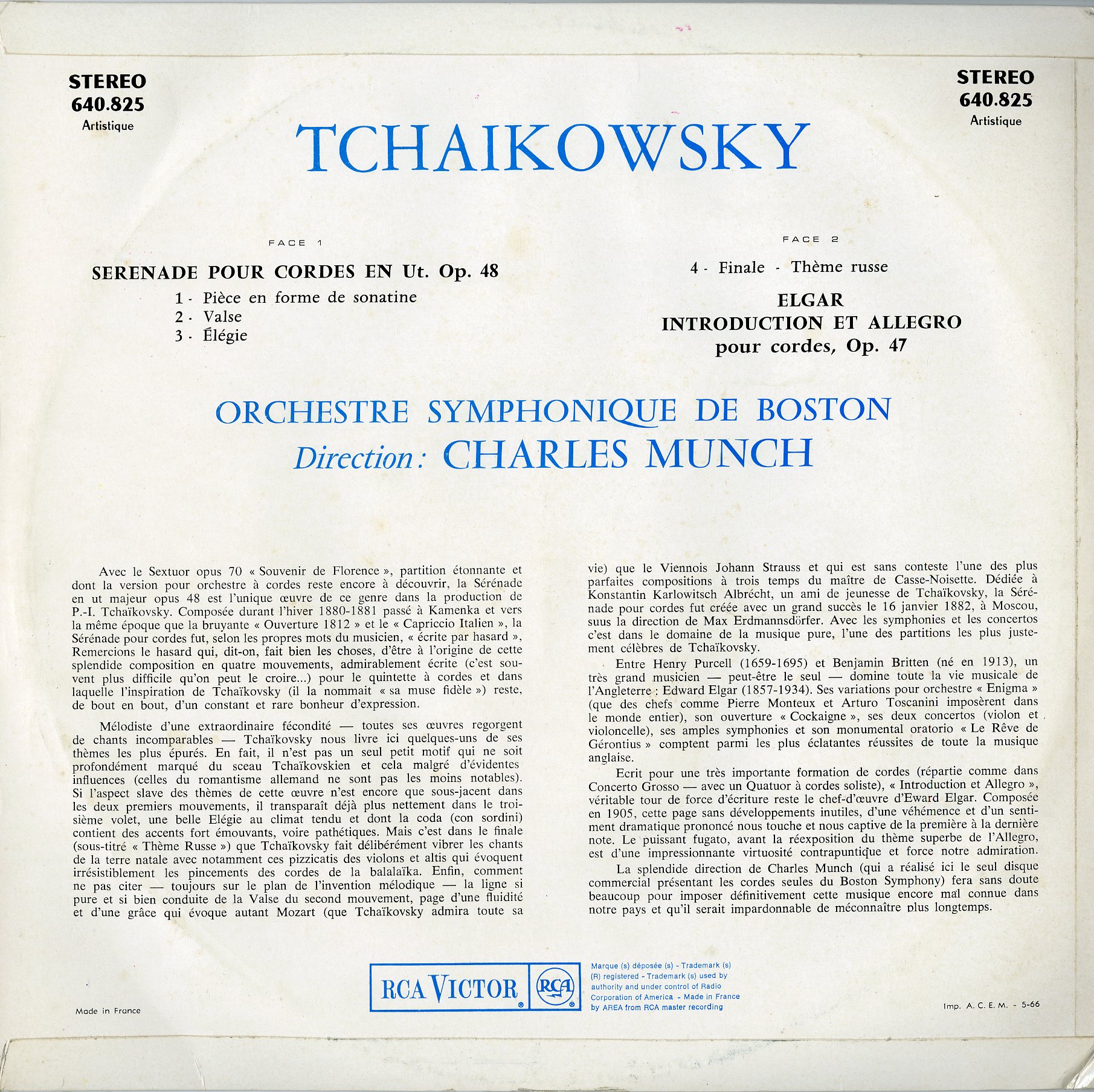 仏 RCA 640.825 仏 RCA 640.825 (640.825) ミュンシュ チャイコフスキー:弦楽セレナード,エルガー:序奏とアレグロ BSO ☆ 在庫状態 : 在庫有り ¥11,000(税込) 数量