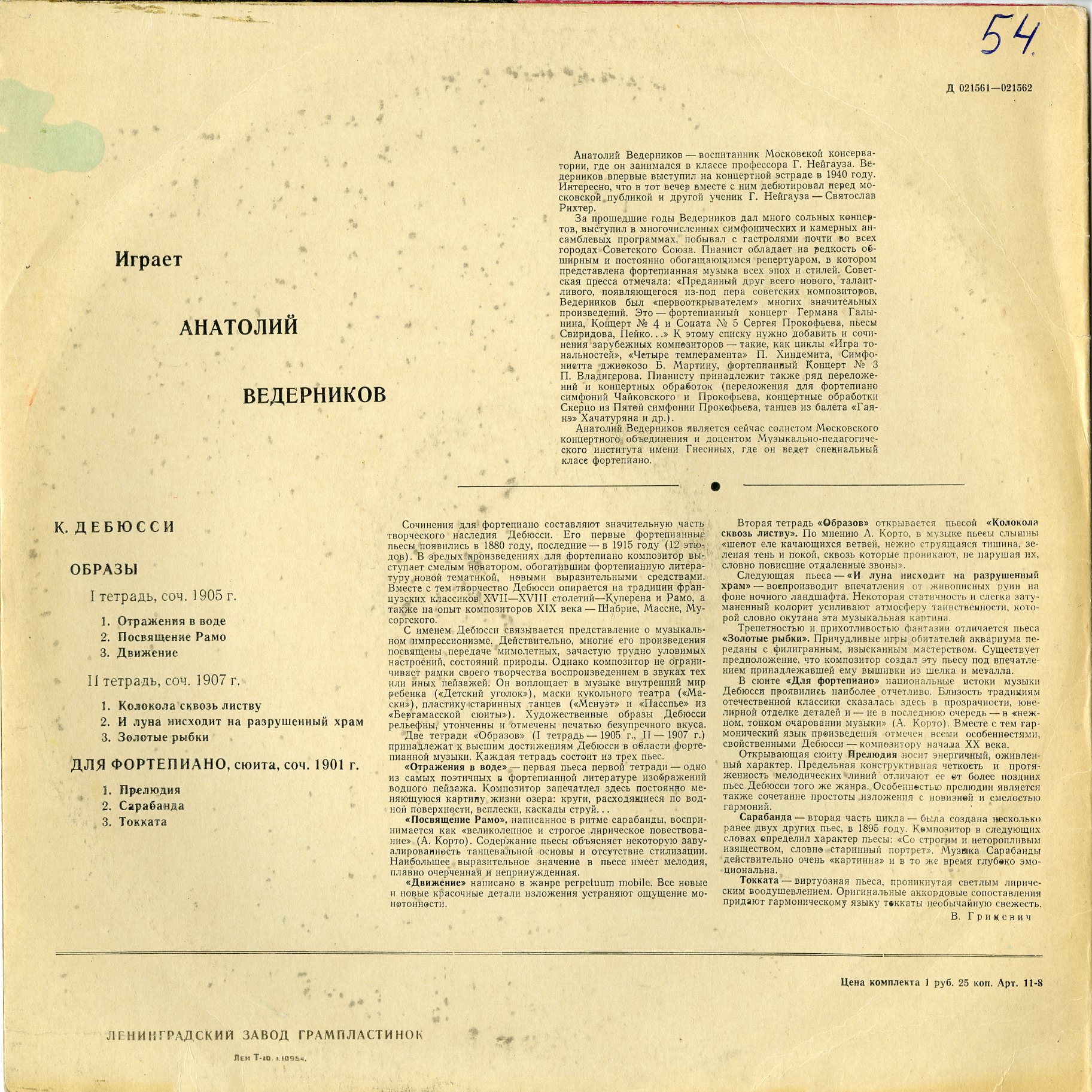 露 MELODIA D 021561 露 MELODIA D 021561 (D021561) ヴェデルニコフ ドビュッシー:影像 第1集,第2集,ピアノのために 在庫状態 : 売り切れ ¥33,000(税込) 只今お取扱い出来ません