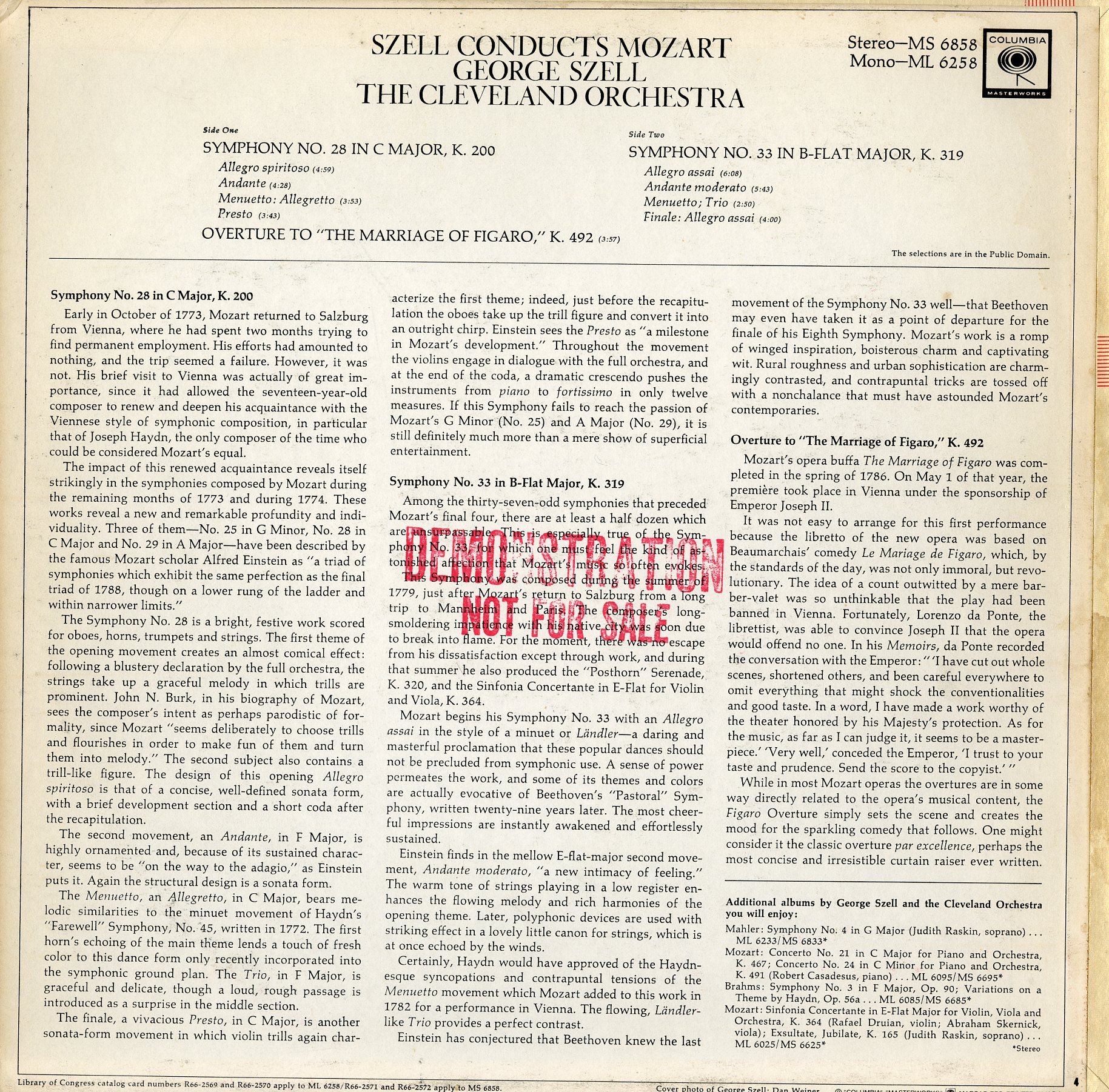 セル モーツァルト:Sym No.28 & No.33,フィガロの結婚序曲 Clevlnd ☆