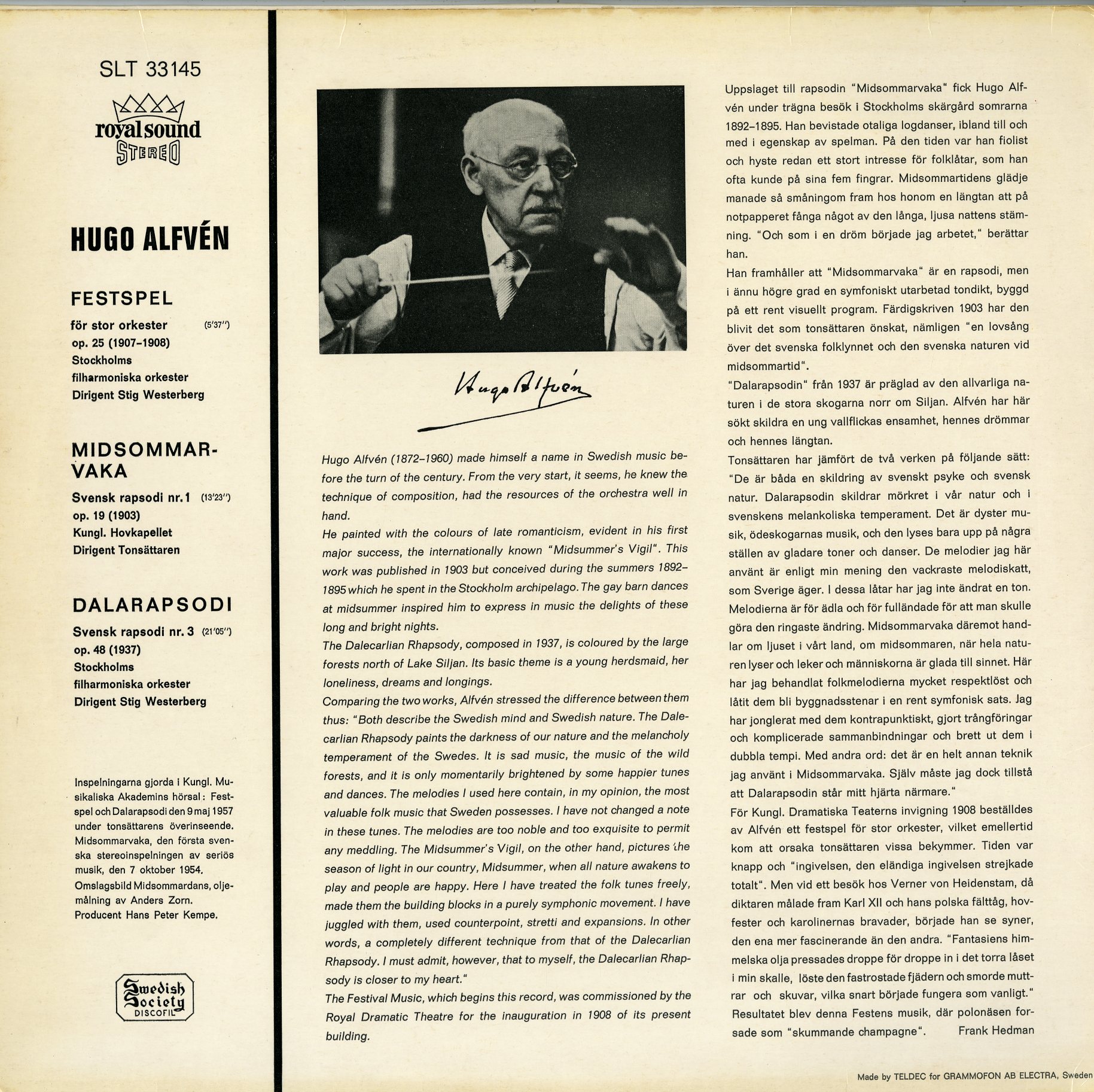 ウェステルベリ、トンサッタレン* アルヴェーン:祝典序曲,スウェーデン狂詩曲 No.1 夏至の徹夜祭* 王立スウェーデンO,No.3 ダラ狂詩曲 ストックホルムPO ☆