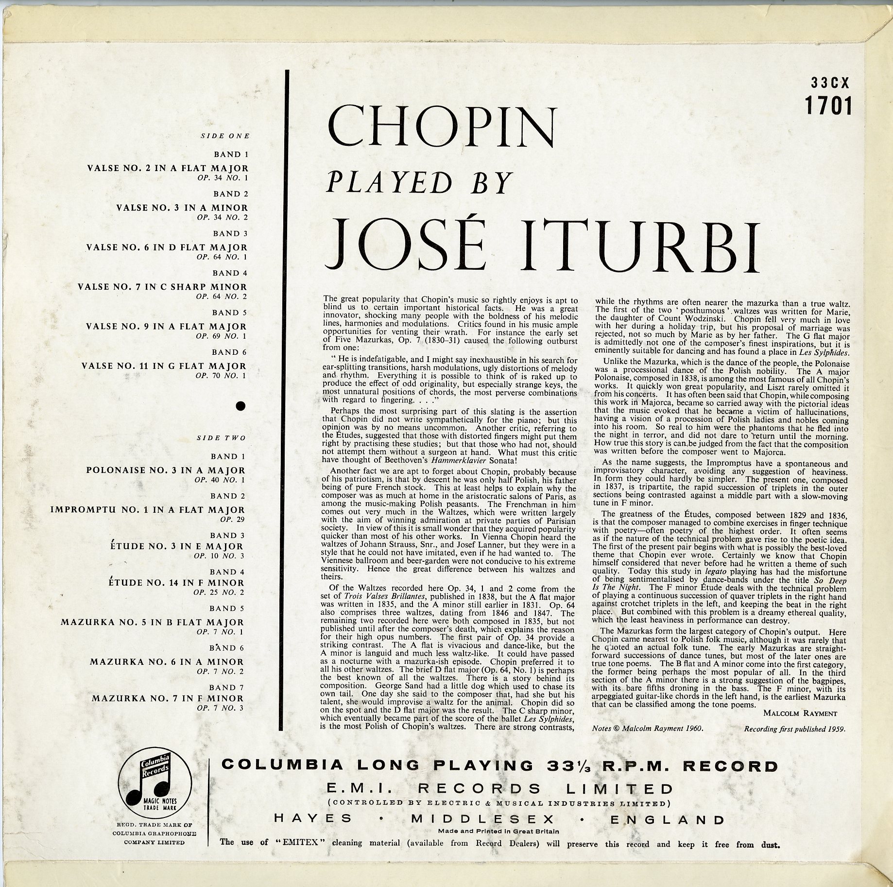 英 COLUMBIA 33CX 1701 英 COLUMBIA 33CX 1701 (33CX1701) J.イトゥルビ ショパン:ピアノ曲集 ワルツ,マズルカ,即興曲 No.1,ポロネーズ No.3,練習曲他 在庫状態 : 在庫有り ¥7,700(税込) 数量