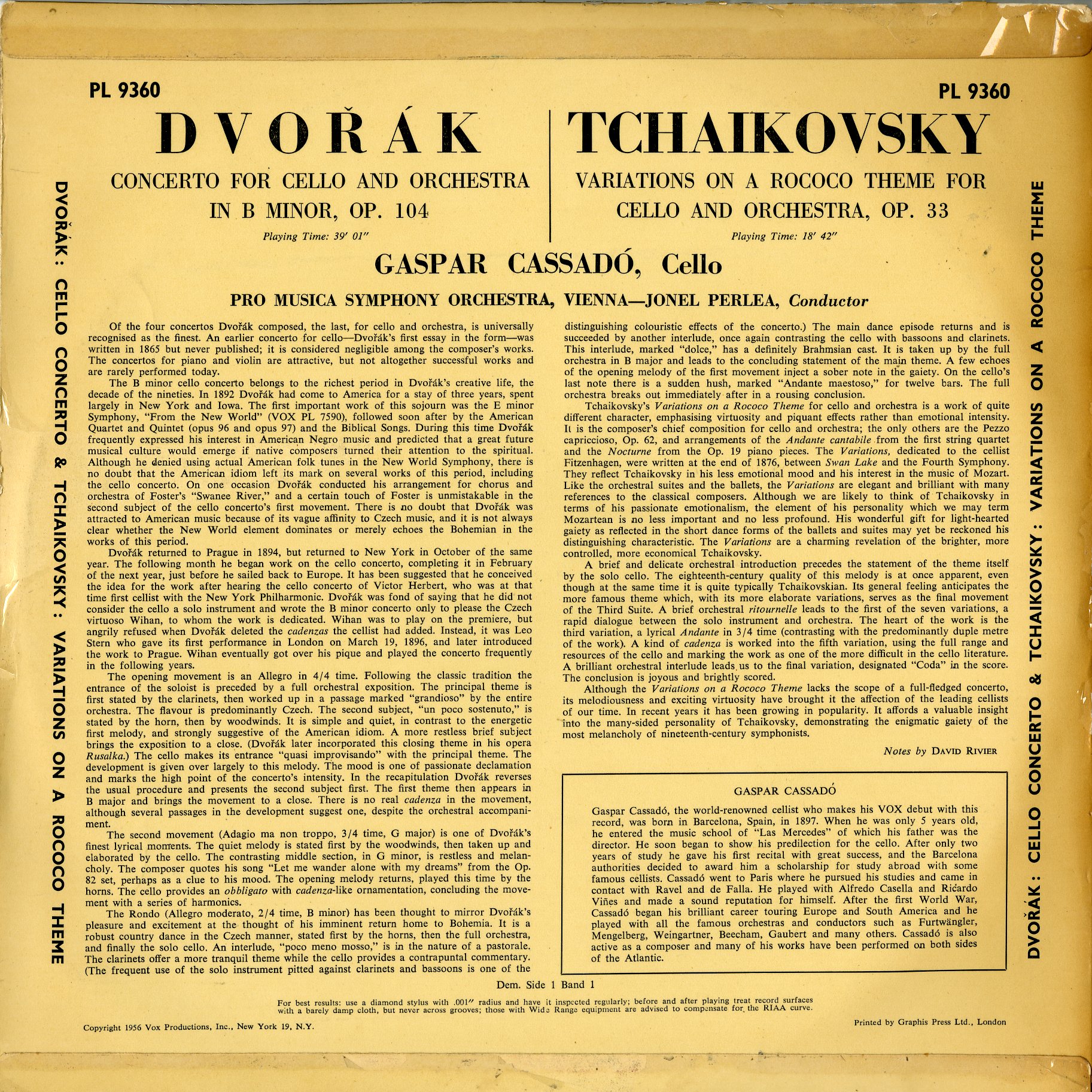 G.カサド ドヴォルザーク:Vc Con,チャイコフスキー:ロココ変奏曲 ペルレア/ウィーン・プロムジカSO