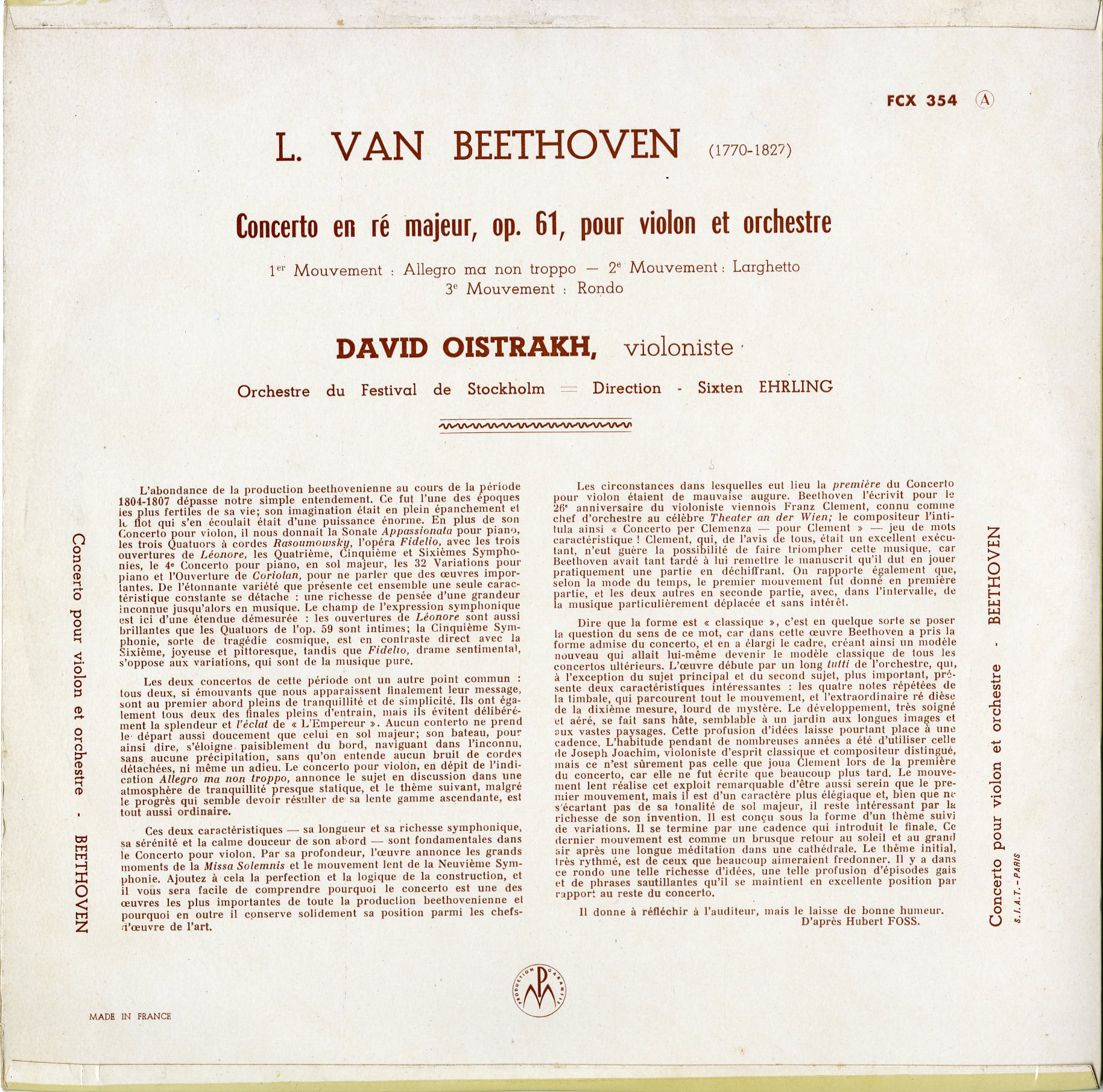 仏 COLUMBIA FCX 354 仏 COLUMBIA FCX 354 (FCX354) オイストラフ ベートーヴェン:Vn Con エールリンク/ストックホルム祝祭O <フラット重量盤> KEY: Oistrakh/Beehtoven/Vn Con Op.61/Ehrling/Oistrakh/Stockholm Festival O 在庫状態 : 売り切れ ¥8,800(税込) 只今お取扱い出来ません